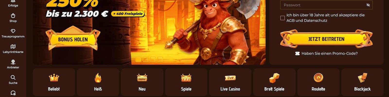 Der Bonus bis 2300 € + 400 Freispielen ist bereits ab einer Einzahlung von nur 20 € verfügbar.